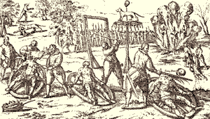 sixteen pieces of wood about a yard in length with represented the sixteen